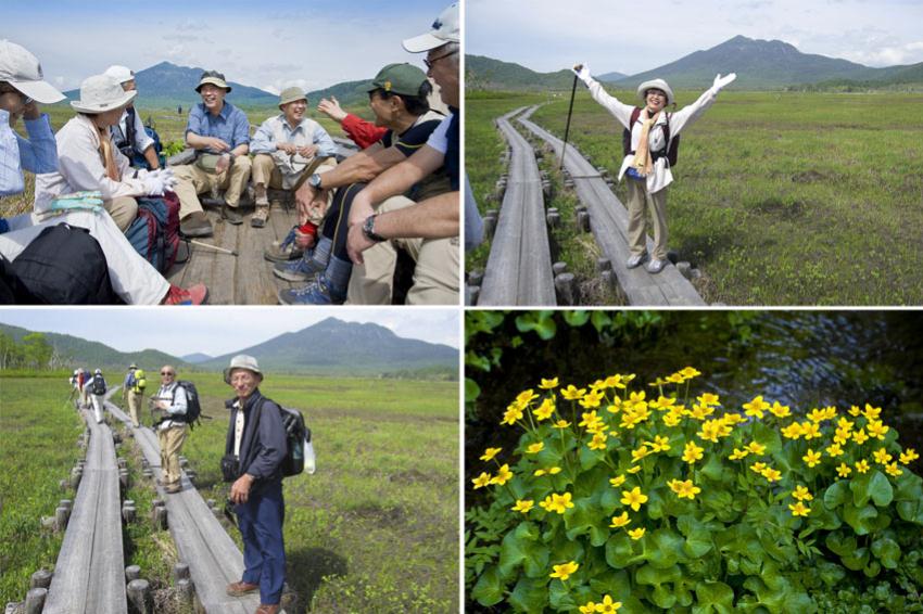 小休止、尾瀬ヶ原を進む、リュウキンカ