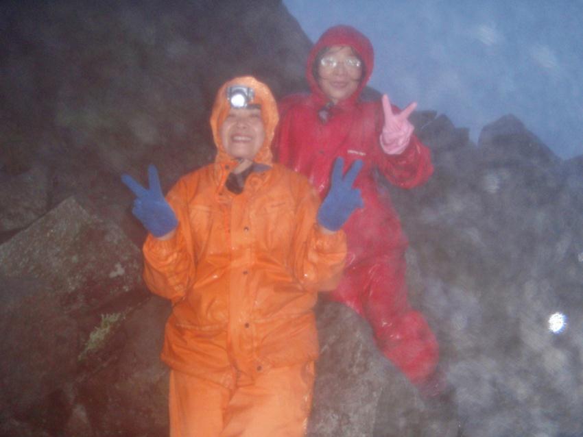 翌早朝 風雨の中、 今雪、白尾、池田さん 3名で 鳥海山頂にアタック