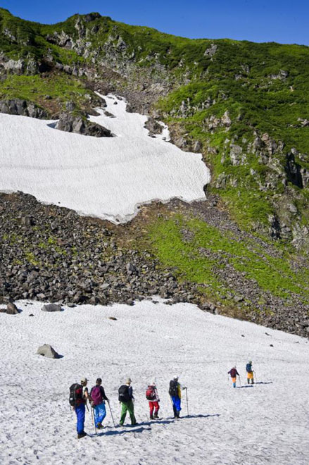 雪渓を行く