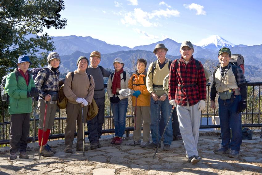 富士をバックに全員集合