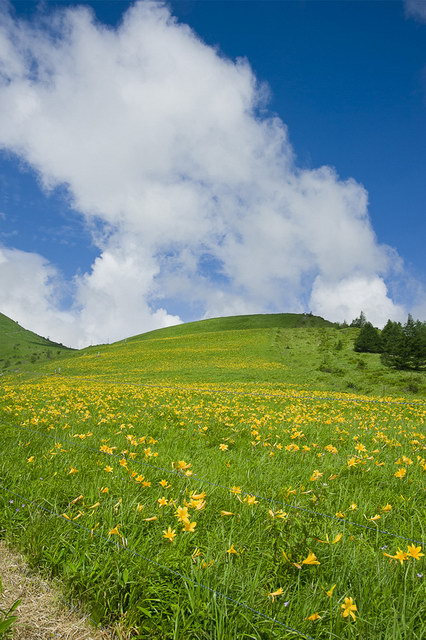 車山高原 ニッコウキスゲと夏の雲