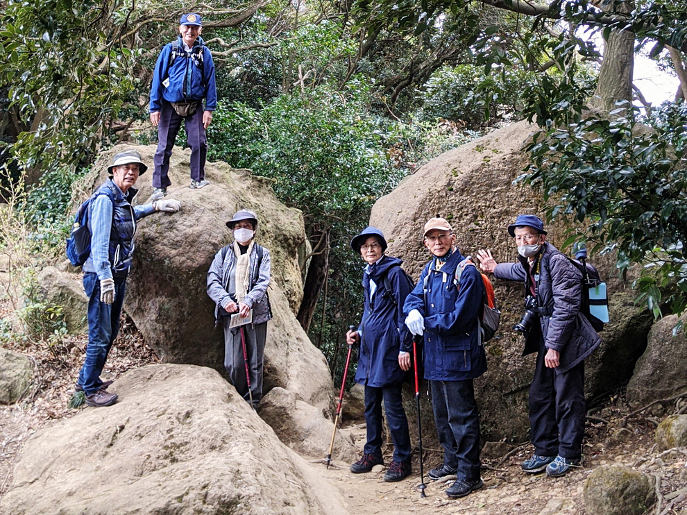 巨岩の隙間を抜ける前に 岩に登ると言う人 ひとりいて